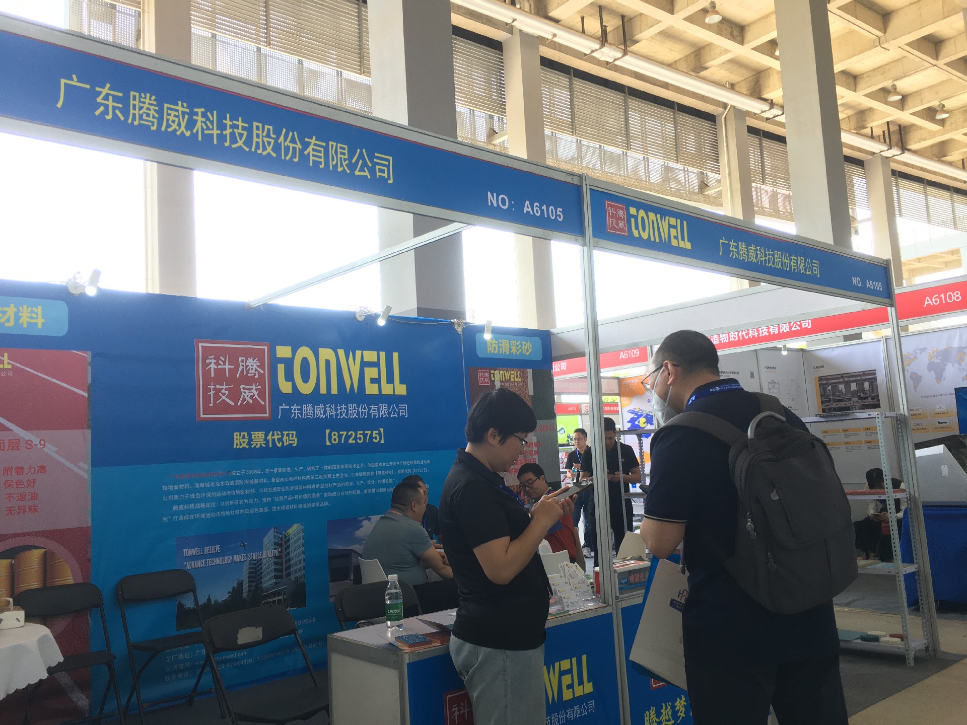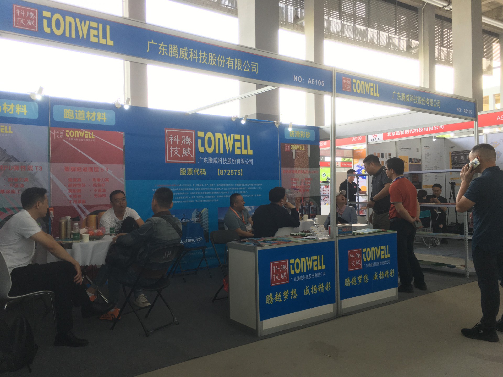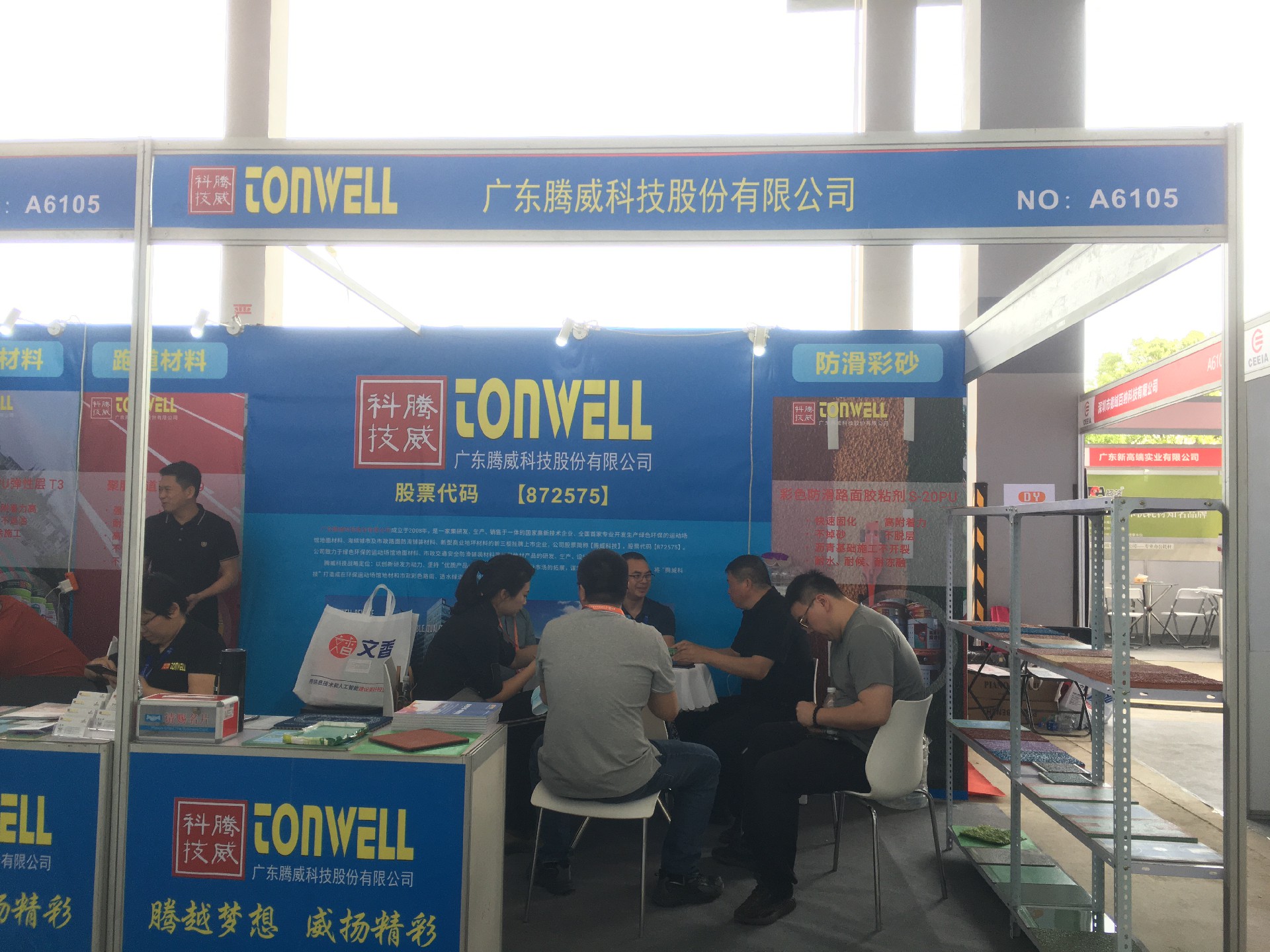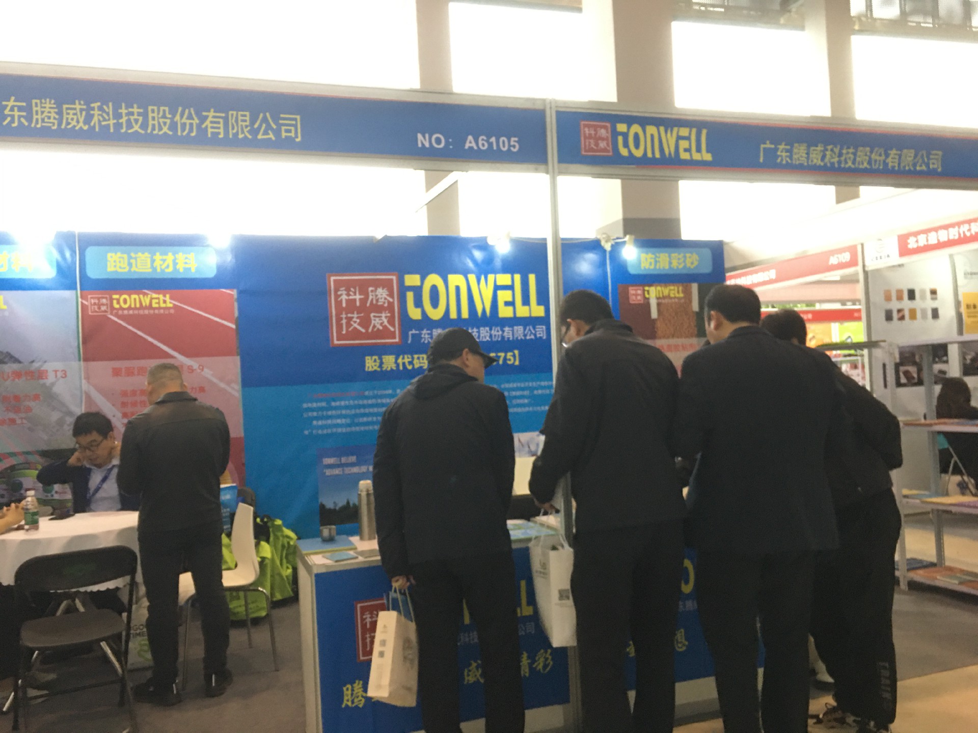 廣東騰威科技攜帶運(yùn)動(dòng)場(chǎng)館地面材料、市政彩色防滑路面、工商業(yè)地坪材料三大鋪裝體系產(chǎn)品亮相本次展會(huì)。展位現(xiàn)場(chǎng)絡(luò)繹不絕、談笑風(fēng)聲。